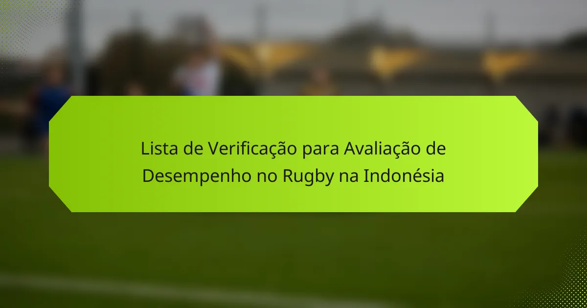 Avaliar o desempenho do rugby na Indonésia requer uma lista de verificação abrangente que se concentra em indicadores-chave de desempenho (KPIs), como estatísticas de partidas, métricas de jogadores e dinâmicas de equipe. Ao utilizar ferramentas avançadas e técnicas de treinamento, os treinadores podem analisar efetivamente o desempenho individual e da equipe, promovendo um ambiente para melhoria contínua e adaptabilidade estratégica.