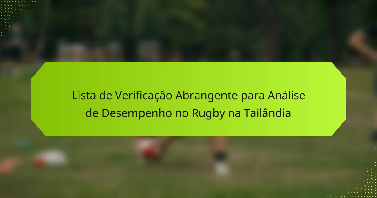 A análise de desempenho no rugby é essencial para avaliar a eficácia dos jogadores e a estratégia da equipe, particularmente na crescente cena do rugby na Tailândia. Ao utilizar uma lista de verificação abrangente, os treinadores podem avaliar sistematicamente vários componentes, como estatísticas dos jogadores, condicionamento físico e dinâmicas da equipe. Implementar essa abordagem estruturada, juntamente com a tecnologia moderna, permite a tomada de decisões informadas que aprimoram tanto o treinamento quanto o desempenho em jogos.
