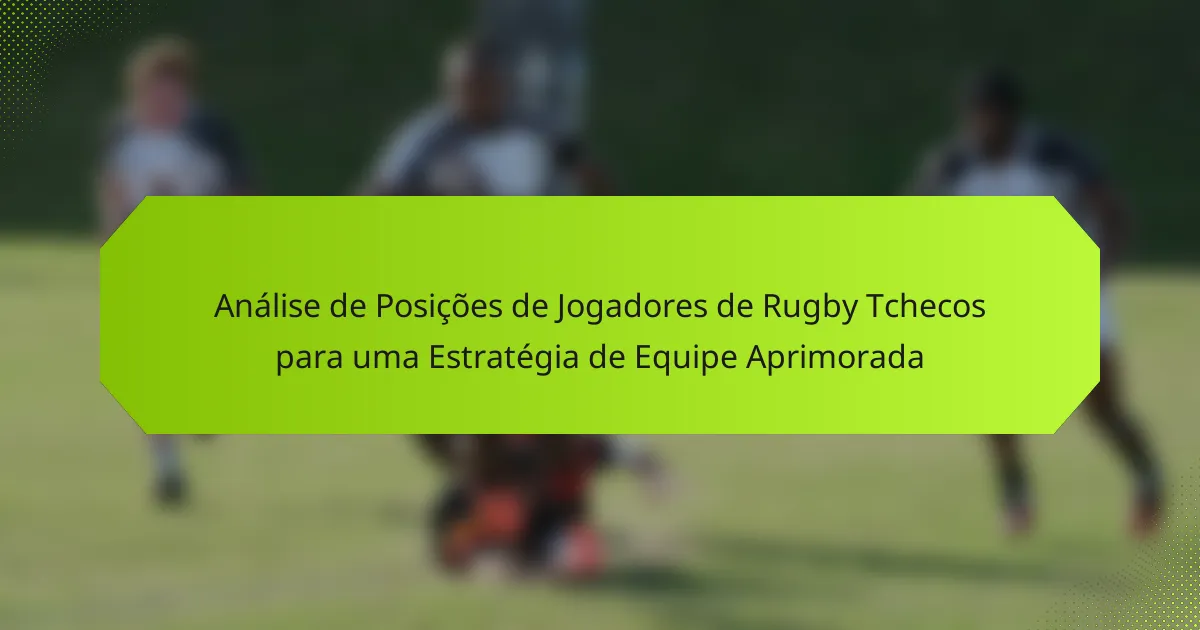 O rugby tcheco apresenta uma variedade diversificada de posições de jogadores, cada uma desempenhando um papel vital na formação da estratégia e dinâmica da equipe. Um entendimento aprofundado dessas posições, juntamente com métricas de desempenho chave, permite que as equipes otimizem seu jogo e adaptem suas táticas para uma eficácia aprimorada em campo.