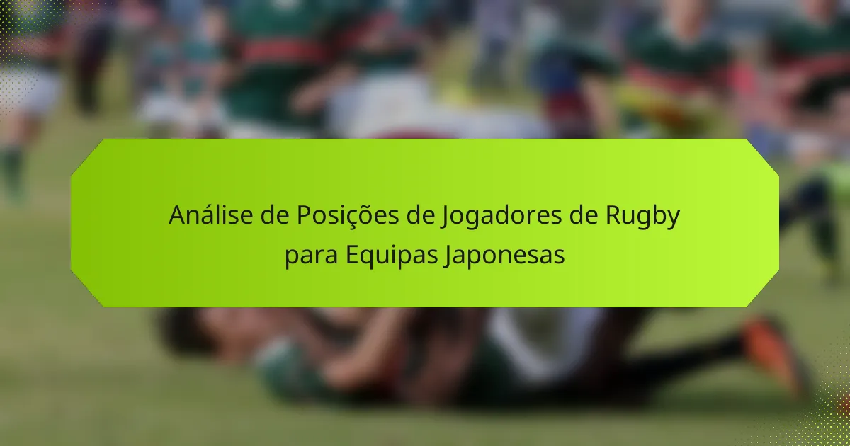 As principais posições dos jogadores no rugby para equipes japonesas incluem forwards e backs, cada um com papéis e responsabilidades distintas. Compreender essas posições é essencial para analisar a dinâmica da equipe e o desempenho nas partidas.