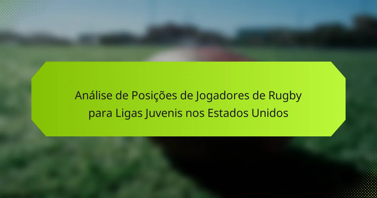 Nas ligas de rugby juvenil, as posições dos jogadores são categorizadas principalmente em forwards e backs, cada uma com papéis distintos que contribuem para a estratégia geral da equipe. Compreender essas posições ajuda treinadores e jogadores a otimizar suas habilidades e o trabalho em equipe.